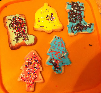 Eventually, we just got the icing on as best we could, put a bunch of sprinkles and stuff on plates, and smashed the coolies into the decorations.